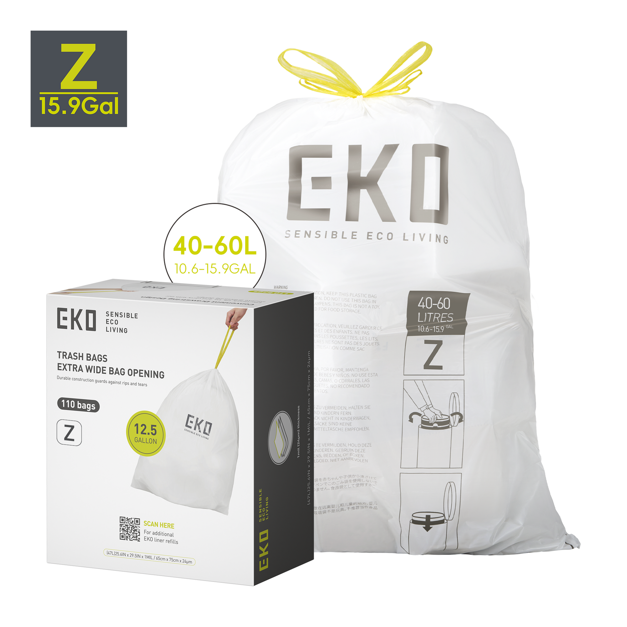 Code Z - 12.5 Gallon Easy-Dispense Roll Trash Bag - 110 Count (40-60L)
