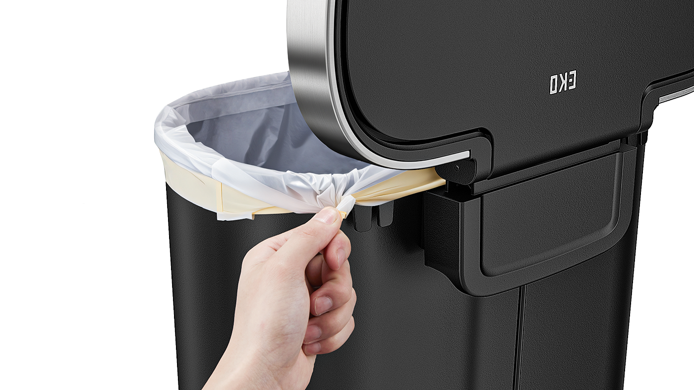 HANA Semi-Round 55L/ 14.5 Gallon Plastic Resin Step Kitchen Trash Can-Black