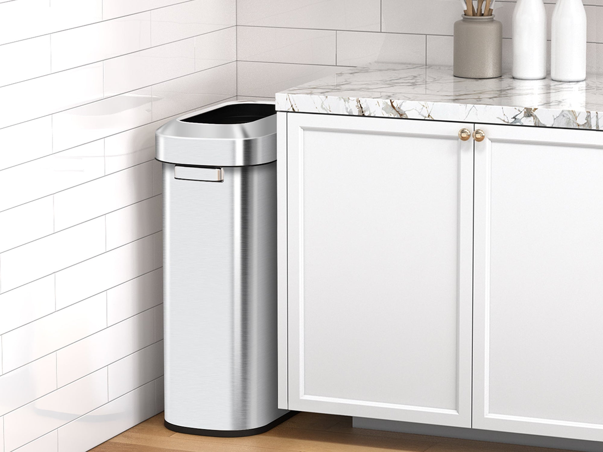 Large capacity and slim, space-saving profile that holds plenty of waste while minimizing footprint.